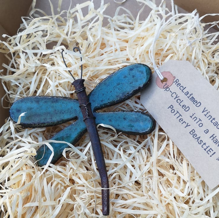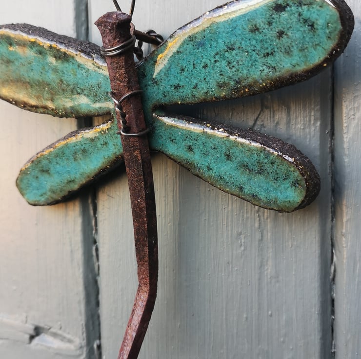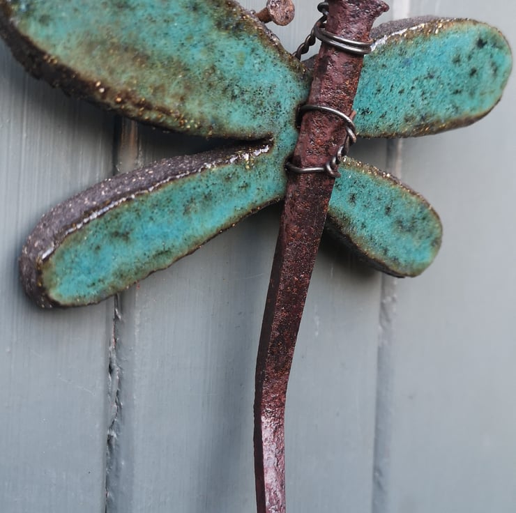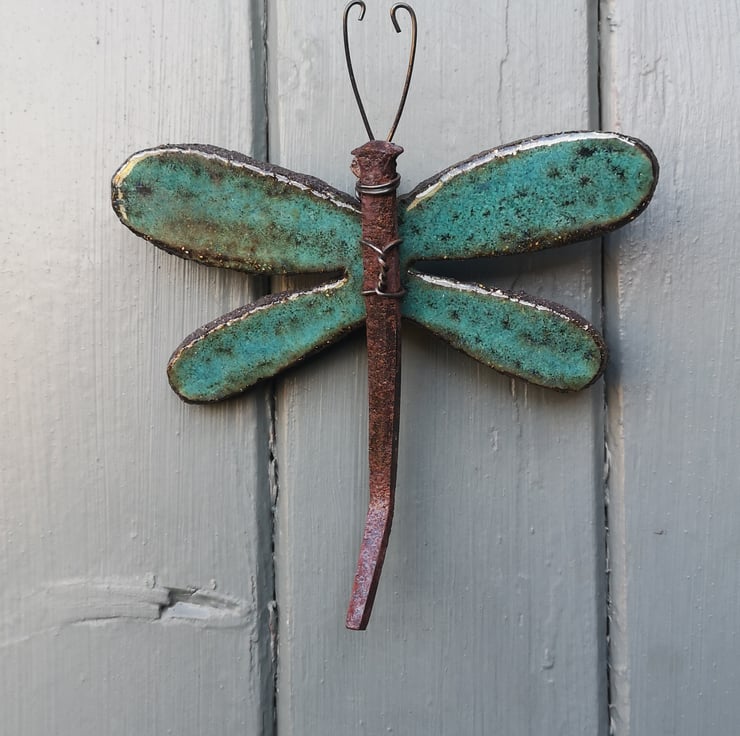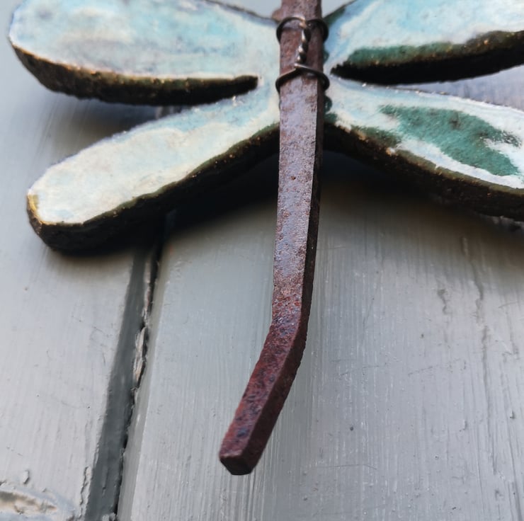 Ceramic Dragonfly, created with an upcycled rusty nail !