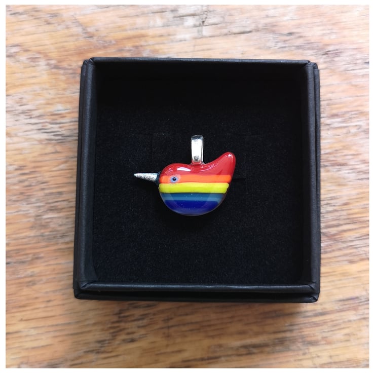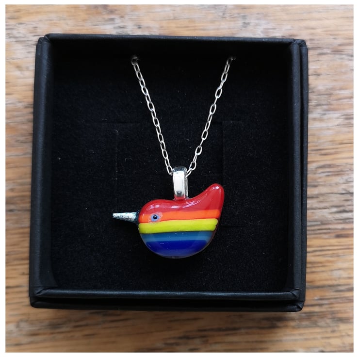 This listing is for a very small 'Rainbow Wren of Hope' pendant with a red back and a cute little shiny silver beak. She comes on a delicate sterling silver 18" cable chain and is presented in a little black box. The perfect little gift for someone special.