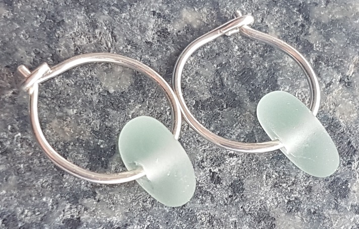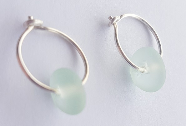 Genuine Aqua Seaglass on 13mm hoops.
