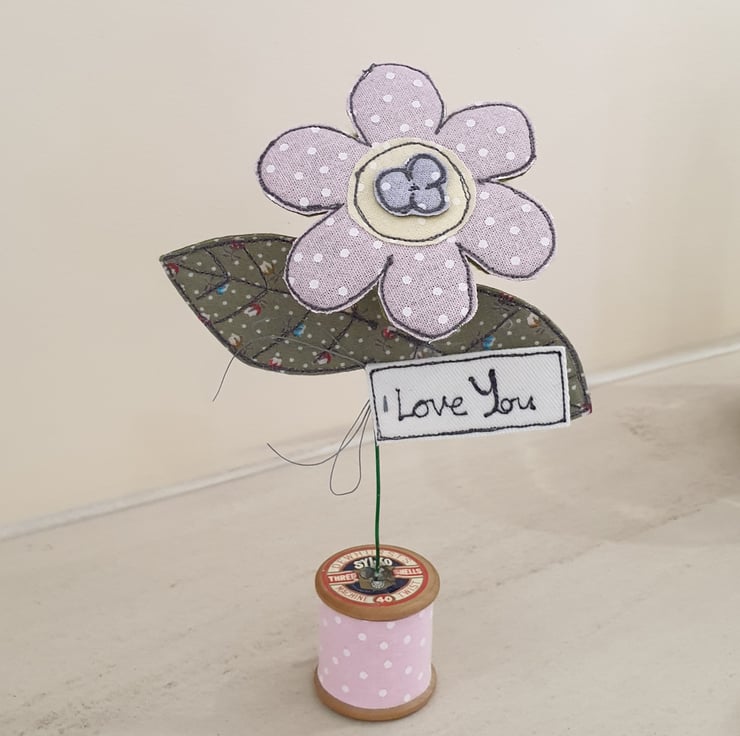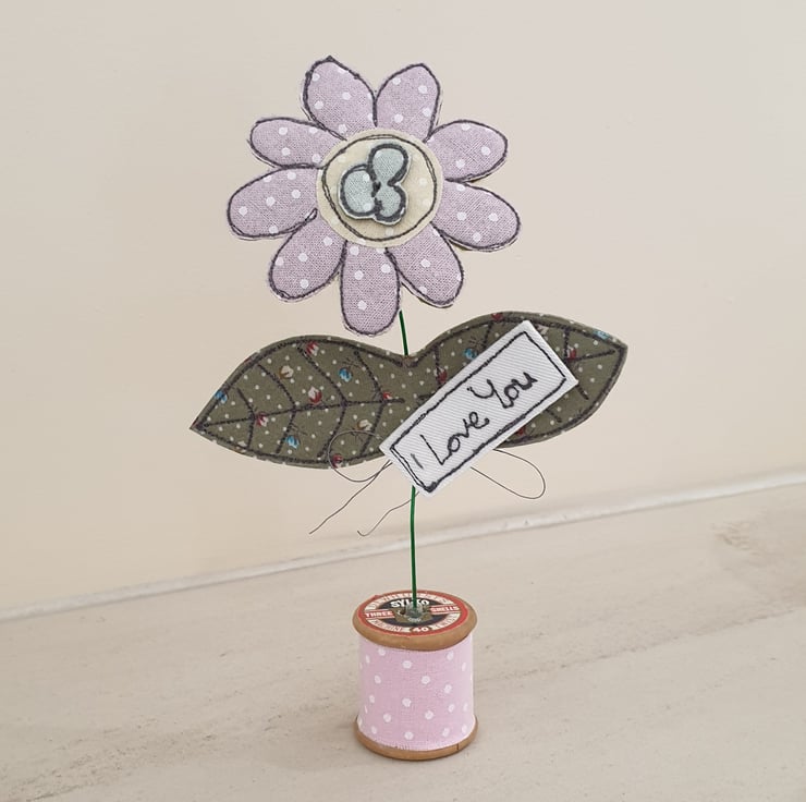 This cheerful fabric and felt daisy has a sweet message tied to the stem.