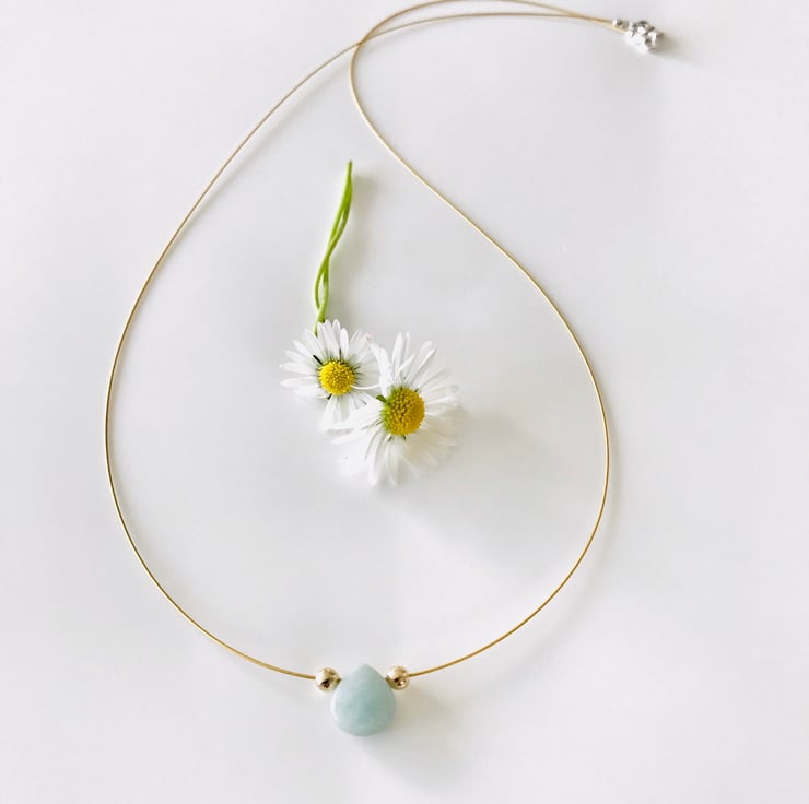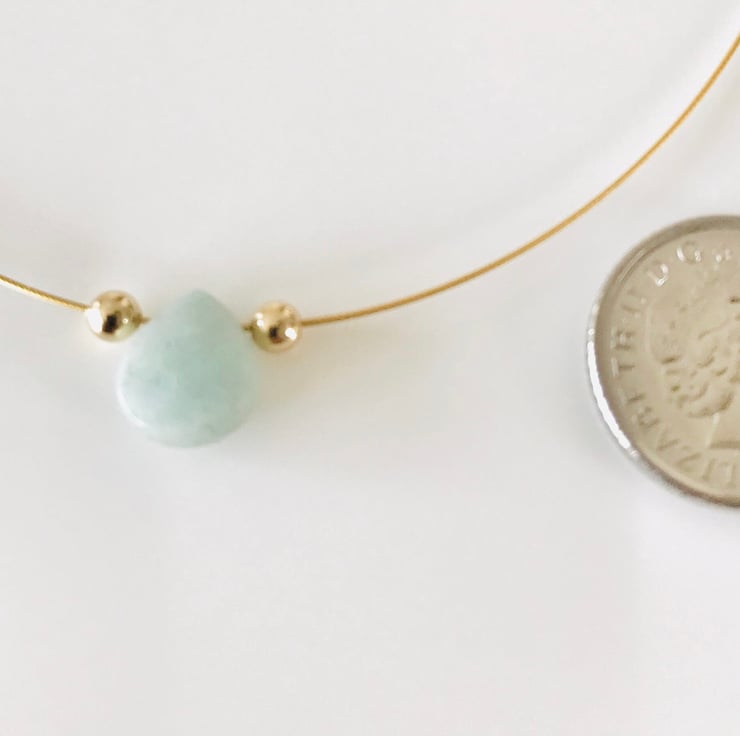 A small & delicate necklet style necklace made with a small (approx 8mm) Amazonite Semi precious faceted briolette bead.