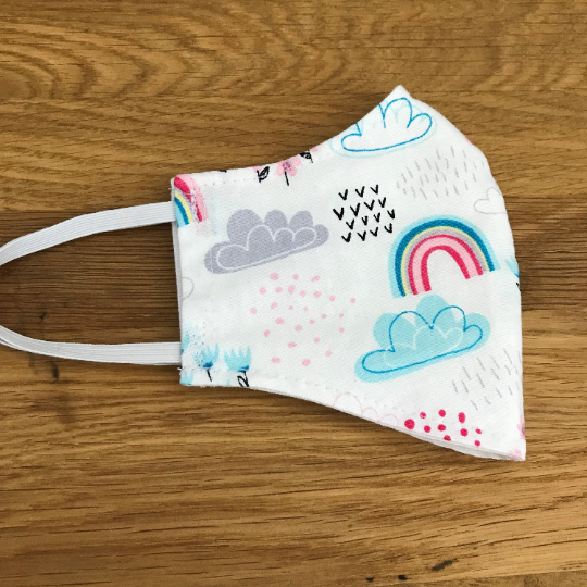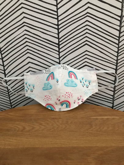 Face Mask Washable and Re-usable 100% Cotton Fabric face covering - Child to Adult Sizes - Choose from 20 fabric designs - Rainbows, Stars, Cactus, Bright Flowers, Feathers, Animals