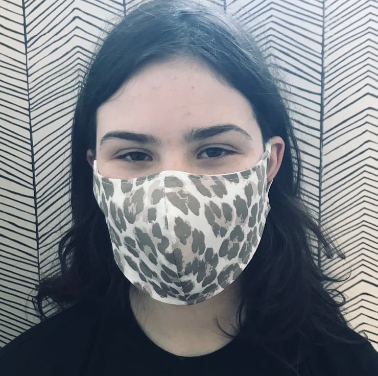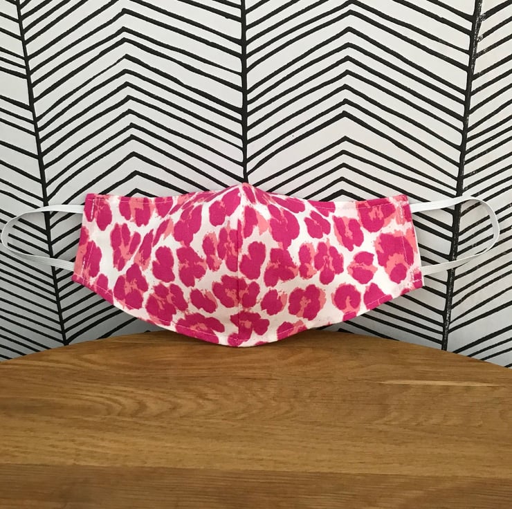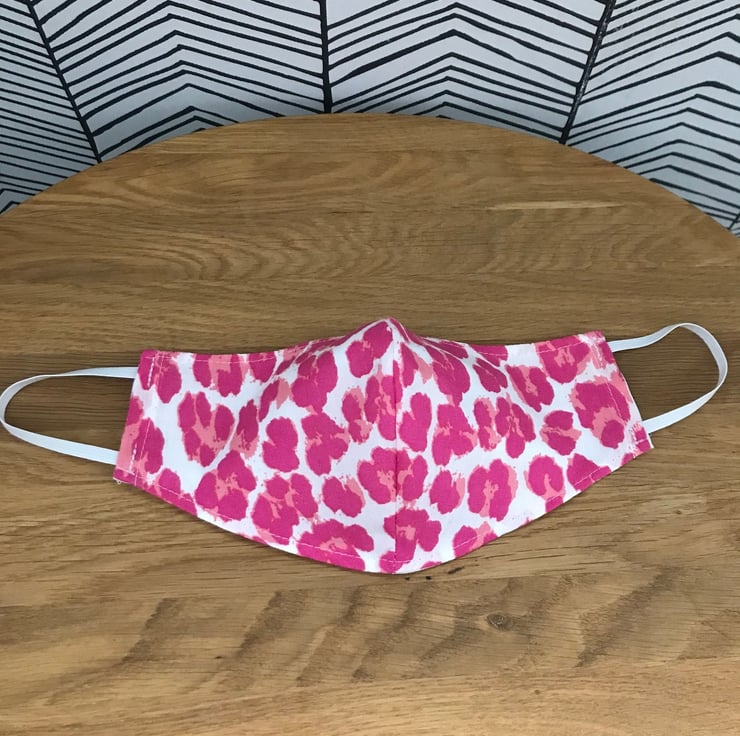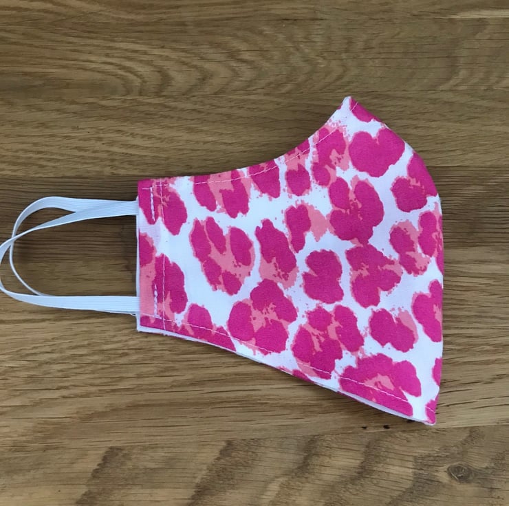 Face Mask Washable and Re-usable 100% Cotton Fabric face covering - Child to Adult Sizes - Choose from 20 fabric designs - Leopard, Stars, Cactus, Bright Flowers, Rainbows, Feathers