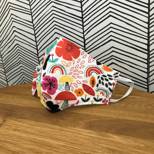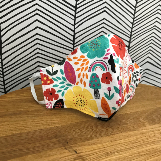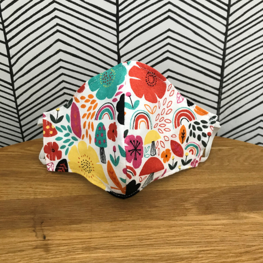 Face Mask Washable and Re-usable 100% Cotton Fabric face covering - Child to Adult Sizes - Choose from 20 fabric designs - Bright Flowers, Stars, Cactus, Rainbows, Feathers, Bears