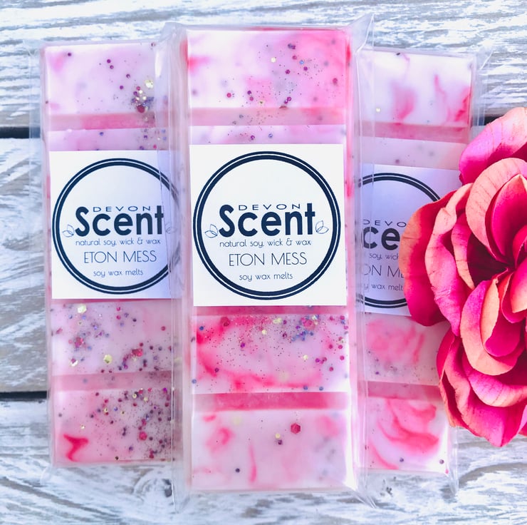 Our highly fragranced Elton Mess Snap Bar Wax Melts have a blended scent of softly whipped cream, sticky sweet meringue and lashings of juicy strawberries with a hint of vanilla.