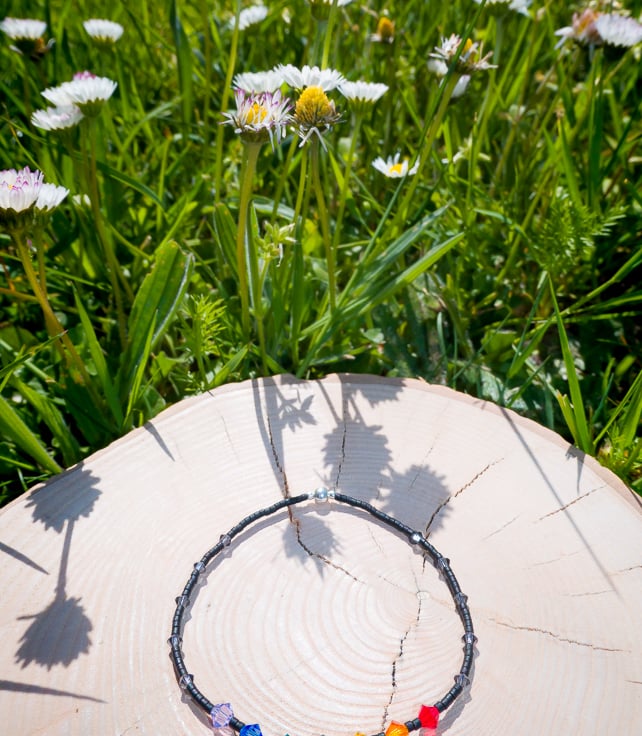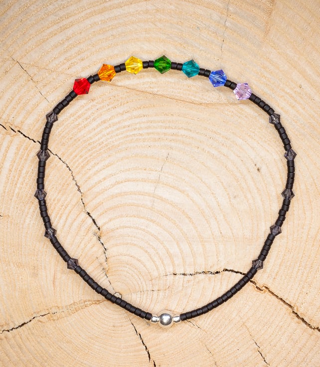 Dainty single bracelet made from black Miyuki delica beads and 2mm/4mm sterling silver beads.