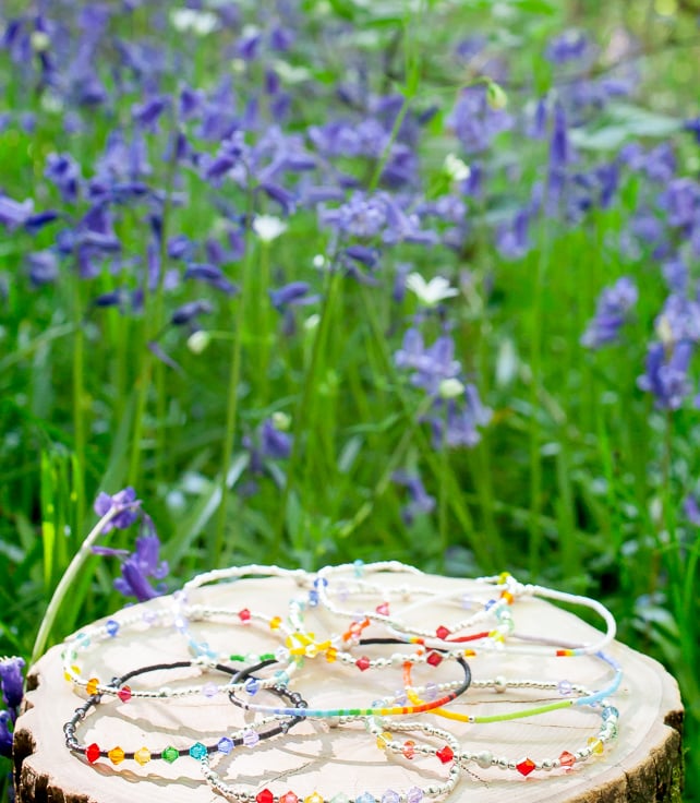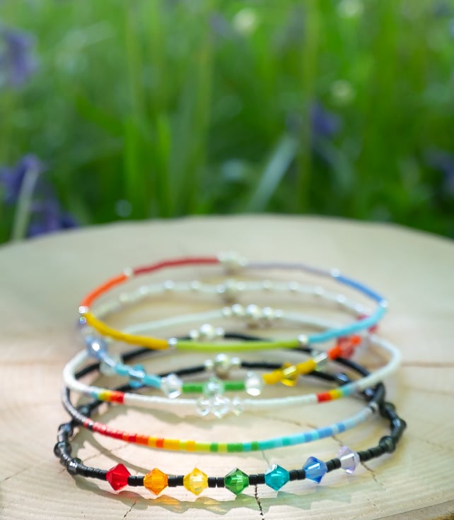 With stretchy jewellers elastic (to slip over your wrist, no clasp),
