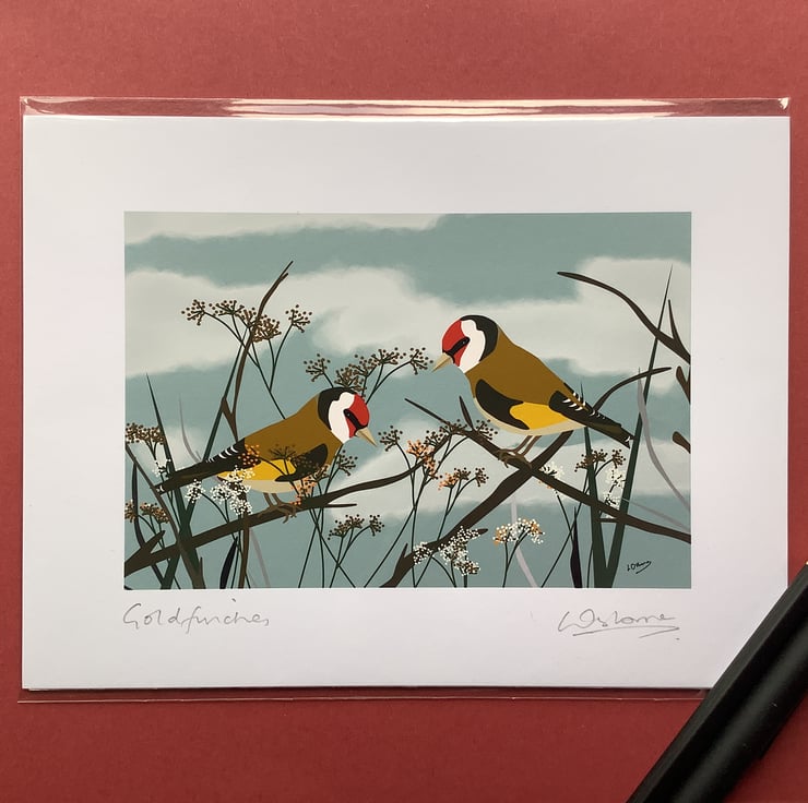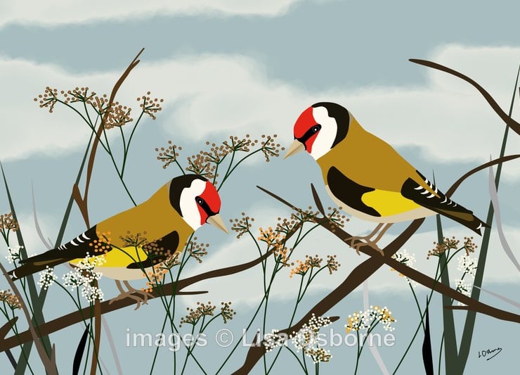 Goldfinches - a signed, high quality, open edition print from my digital illustrations of garden birds.