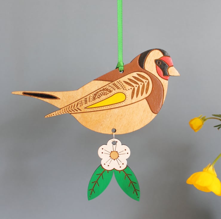 A colourful little goldfinch to hang around your home. This smaller version of our standing goldfinches will bring some colour to even the darkest of corners.