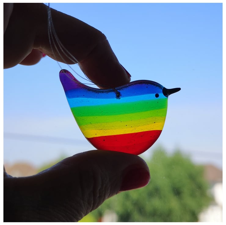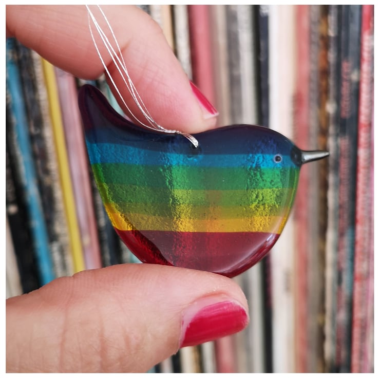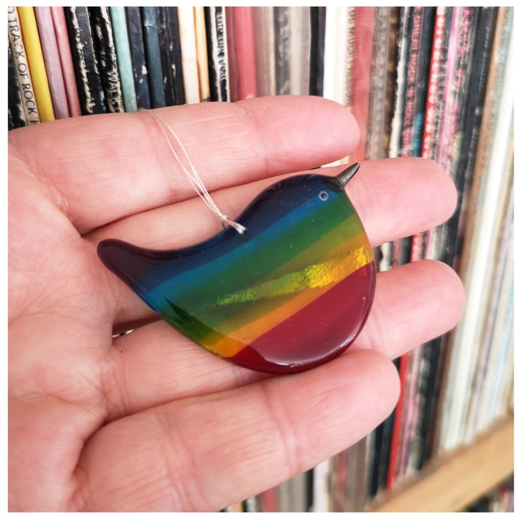 These little birds are a labour of love as I make the rainbow glass and then grind each one into shape using cold working tools and machinery, before a second and sometime third firing. See images.