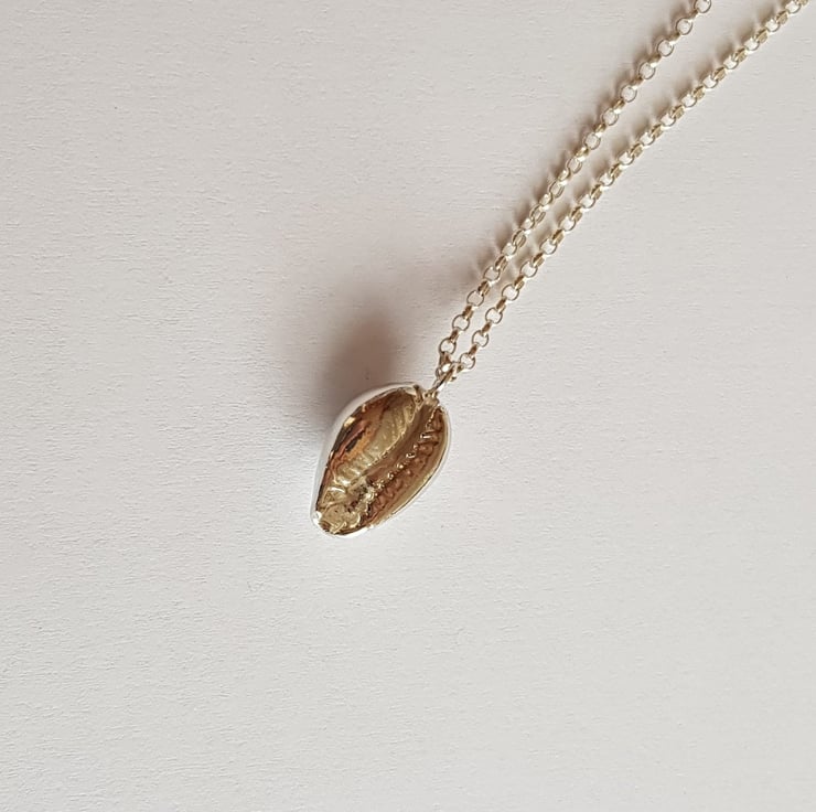 Using the ancient and traditional lost wax casting method, this sterling silver cowrie shell has been cast from a real shell.