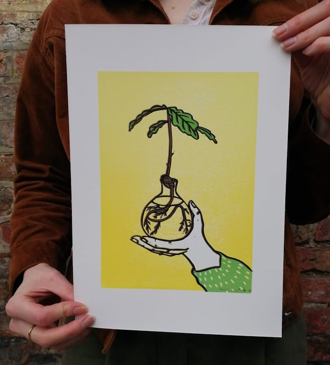 This listing is for an original hand printed lino print. I have used the reduction method to create this image, carving away each layer for the different colours, meaning at the end there is a limited number and can't be re-printed. In this edition there will only be 9 available! There will be slight variations in each one due to the nature of the process.