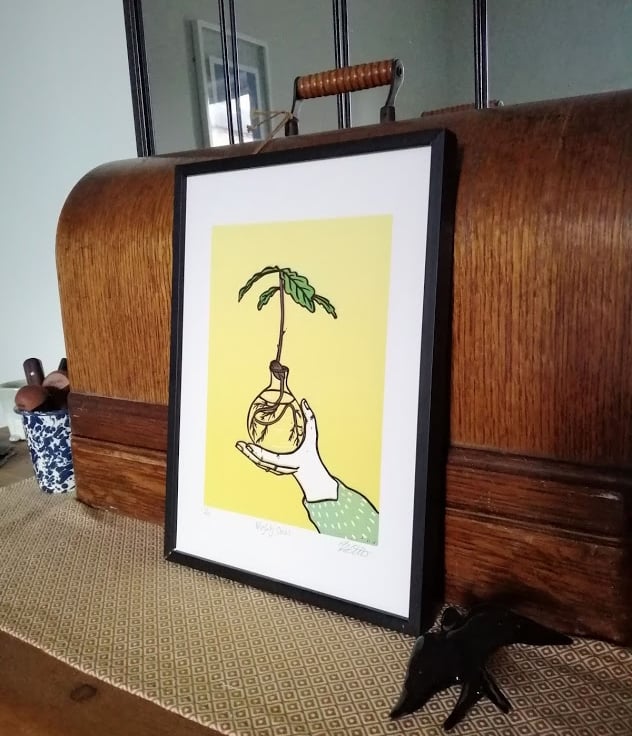 I use UK made heavyweight, acid free A4 paper, the design is 20cm x 15cm, individually signed and numbered in pencil.