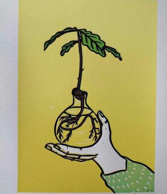 I made this print in the first couple of weeks of "lock down". Using the reduction process isn't something I would usually do but I had more time to experiment with my extra time!