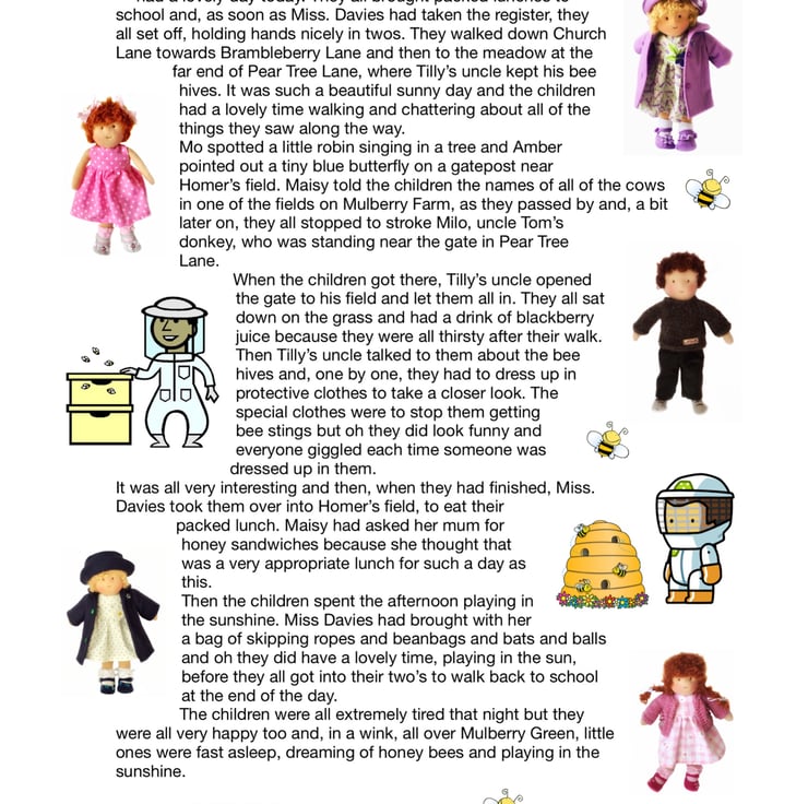 There are other children in Maisy’s class at school - Violet, Billy with his pet rabbit, Amber, Tilly, Rosie and her kittens, Amelia, Ruby, Marigold, Bobby with Max the dog, and the twins Oliver and Olivia, who have a puppy called Oscar. The dolls are all 26cm tall and baby Daisy is 16cm. Maisy and Mo love nothing more than having adventures with their friends. You can read about their adventures on my Facebook and Instagram pages - Maisy Muffin Rag Dolls and on my Mulberry Green Pinterest boards.