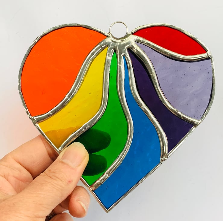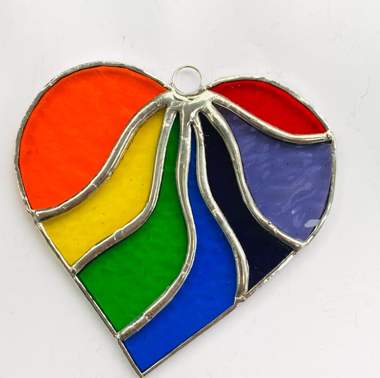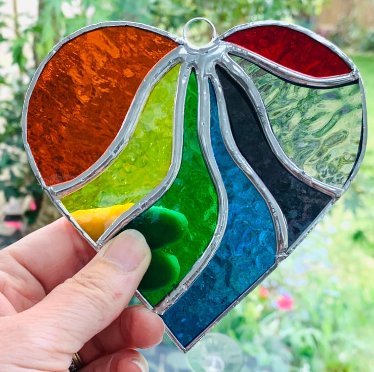 This beautiful heart is made from vibrantly coloured stained in all the colours of the rainbow.