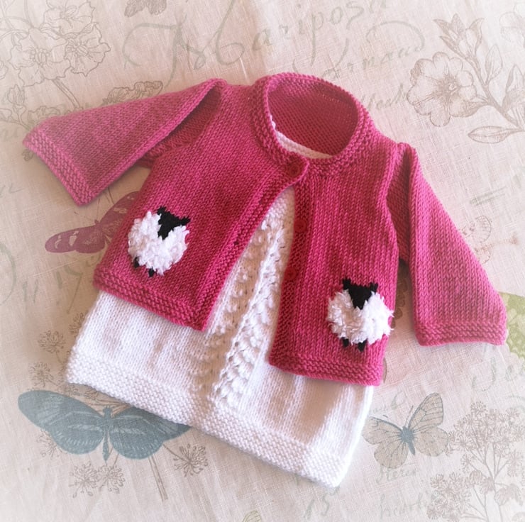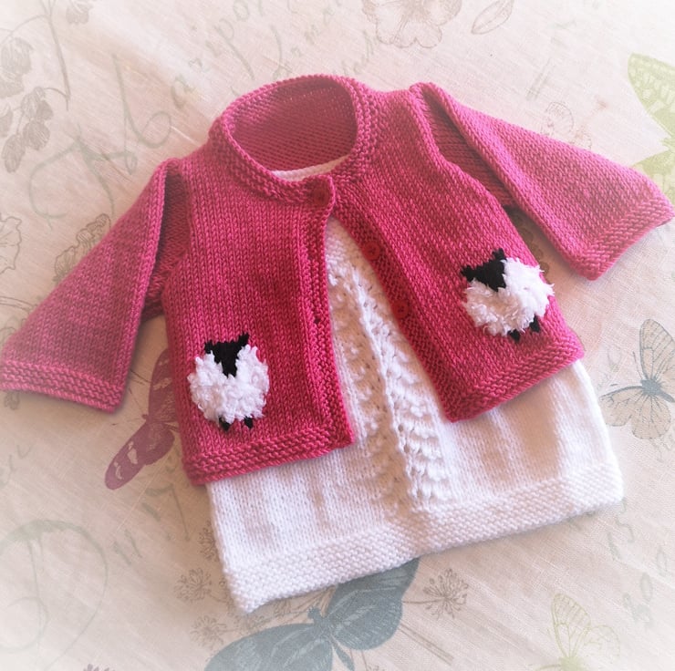 Knitting pattern for a cute baby jacket and dress. Quick to knit and makes a lovely baby shower gift for a newborn or for toddlers up to the age of 18 months.