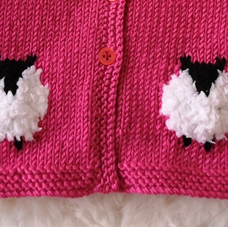 Soft and fluffy sheep feature on the baby cardigan which is easy to knit in garter stitch and stocking stitch. The sheep are knitted on the fronts of the jacket and is a great pattern for trying your hand at intarsia knitting (picture knitting).