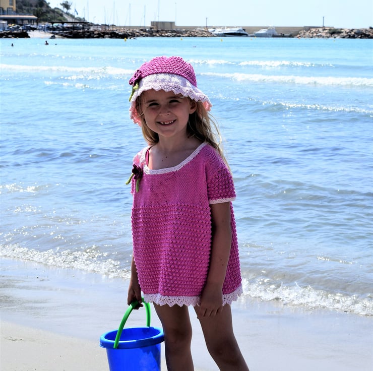 Knitting Pattern for a very cute matching Sun Hat and Summer Top in double knitting lightweight yarn.