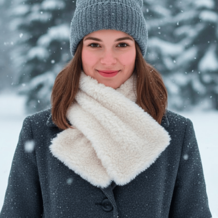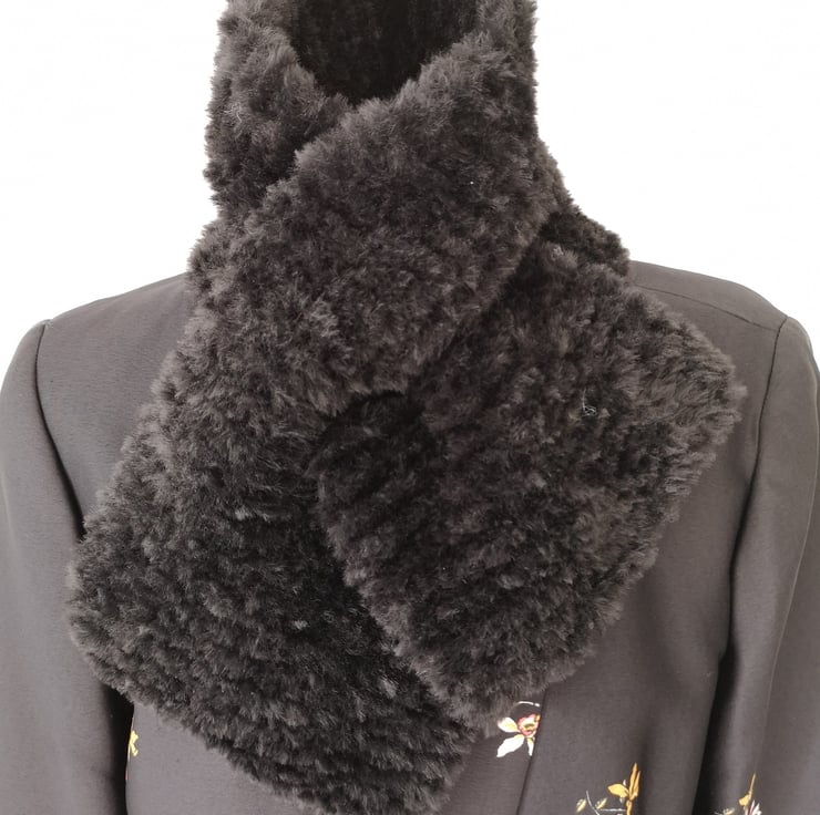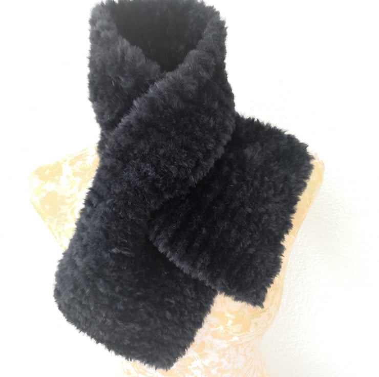Knitting pattern for Glamorous Faux Fur Neck Warmers suitable for novice knitters.