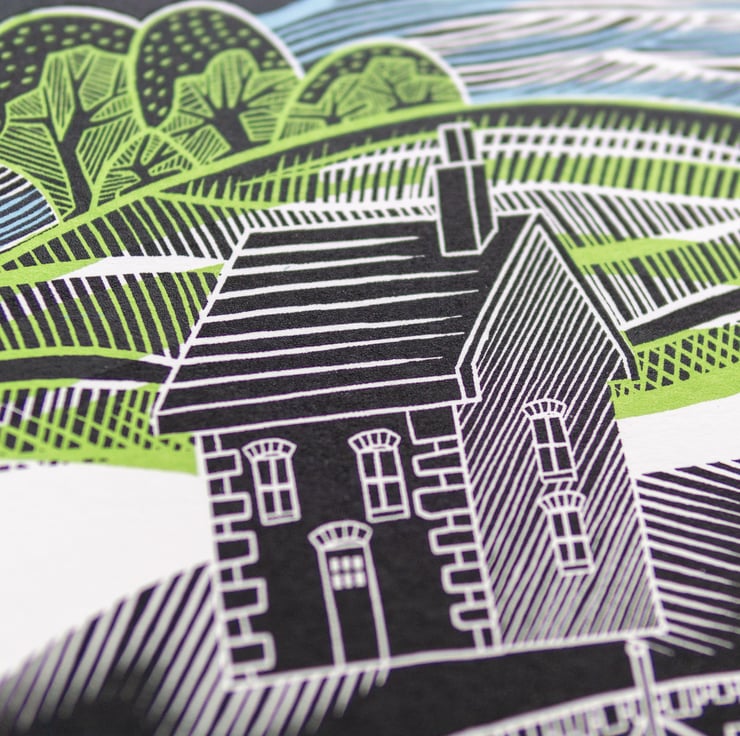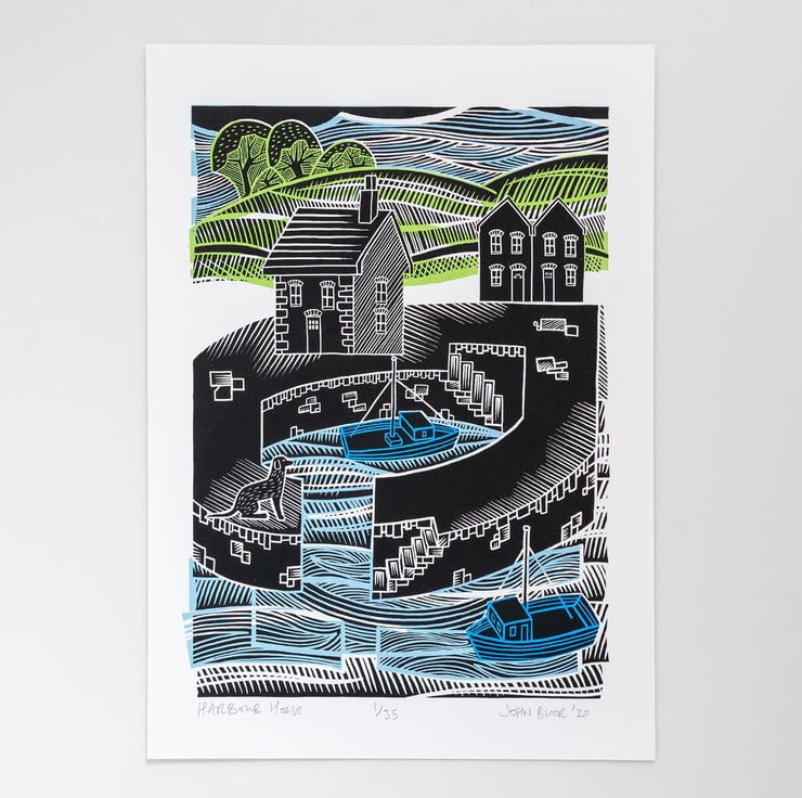 This "Harbour House" screen print is from a limited edition of 35. Each one is named, signed and numbered by me.