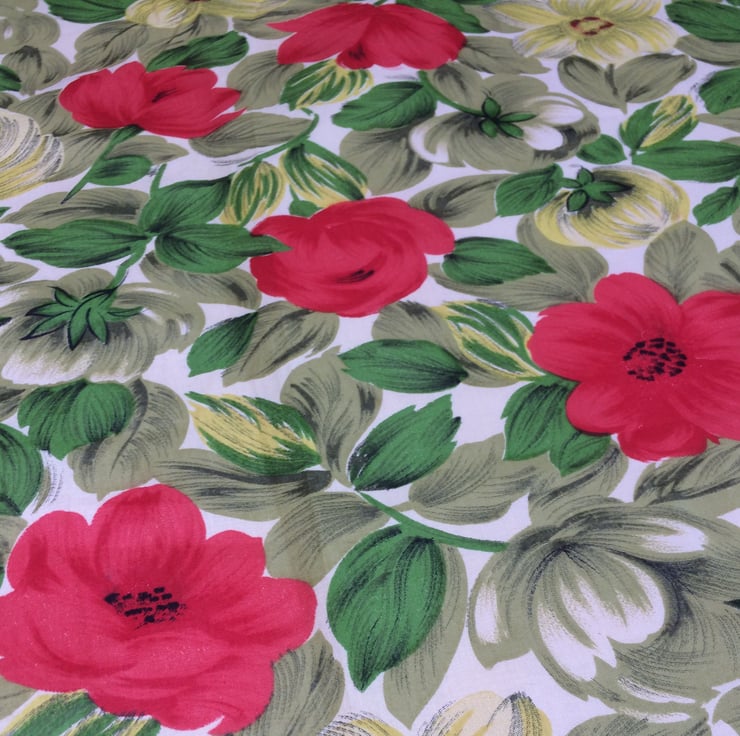 50s MCM RETRO Red Rose and Green Leaf vintage fabric Lampshade option - pretty fabric for a lampshade for shabby chic or retro home decor .