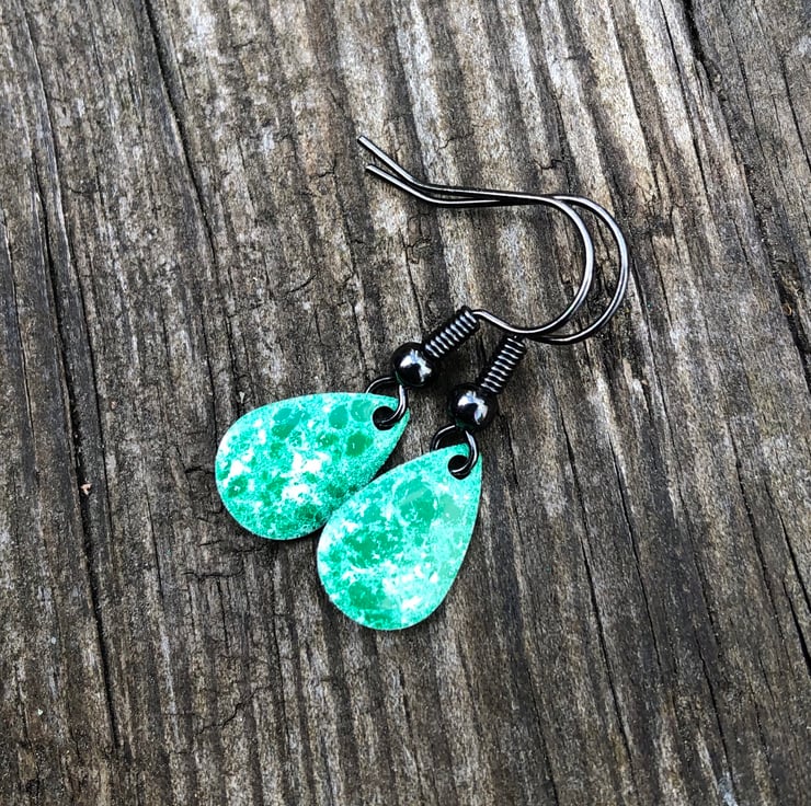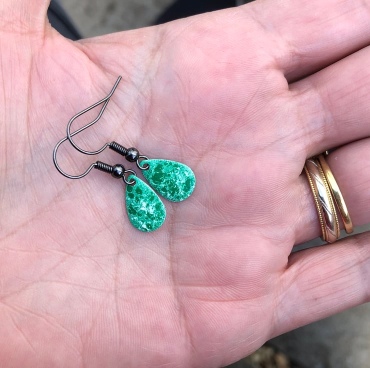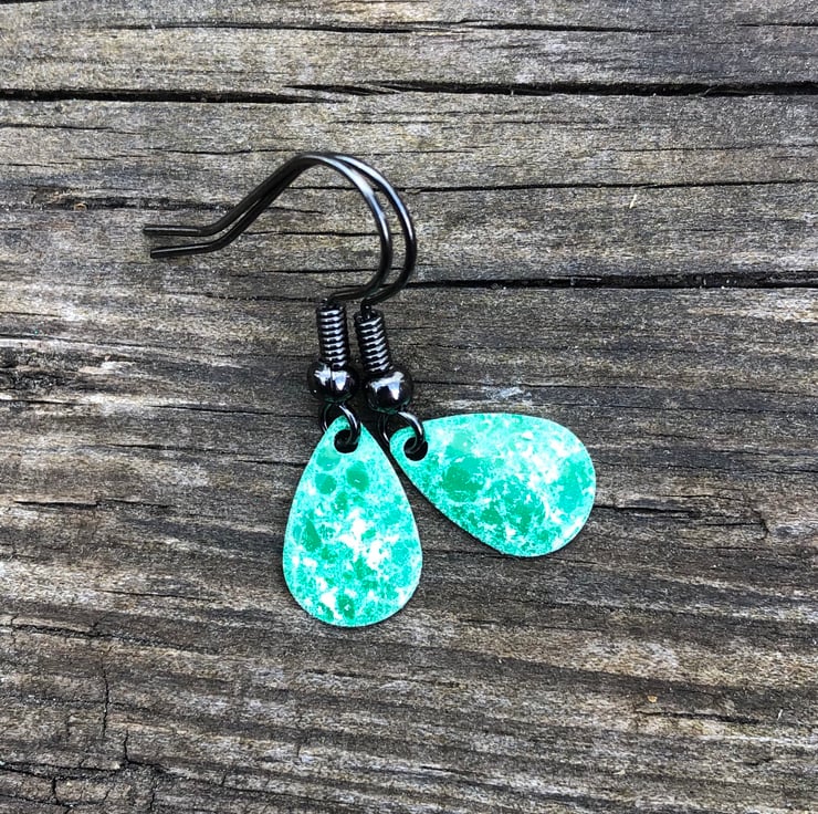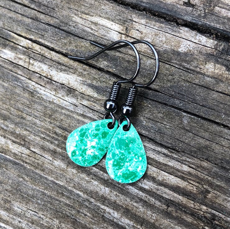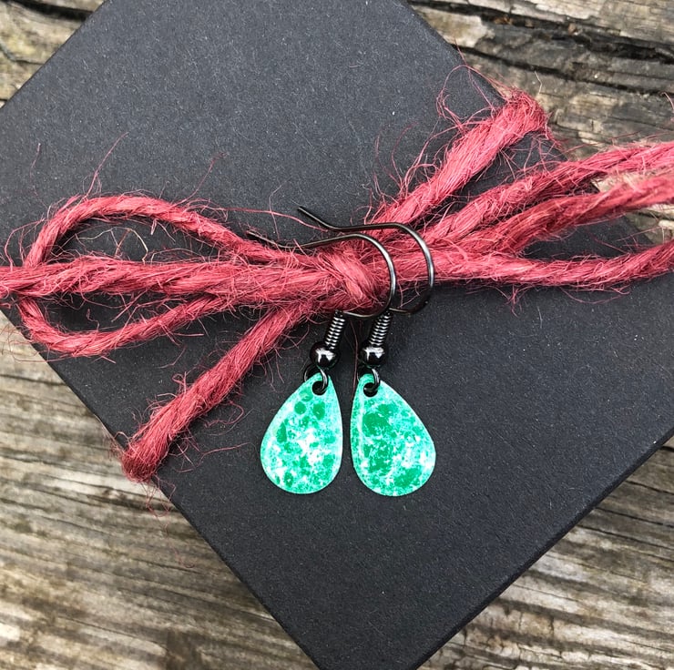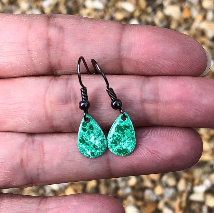 13x8mm silver tone metal charms have been hand enamel in a selection of cold enamel colours. The charms hang from antique black brass earrings, but can be upgrade for an additional cost of £2.50 to Sterling Silver.