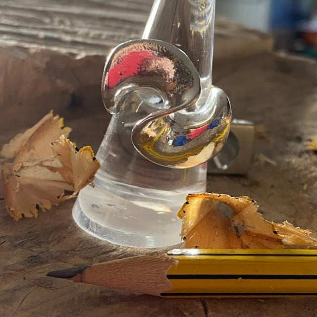 A great big solid ring reminiscent of the curls of the wood that come off a pencil when you sharpen it.