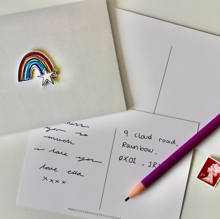 Your rainbow postcard will be sent in a glassine envelope with a heart label to close.