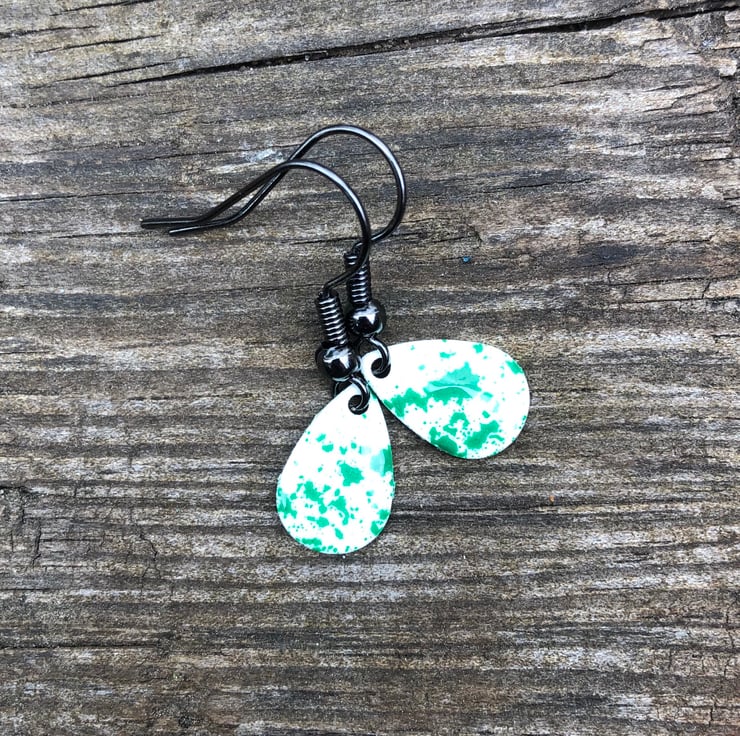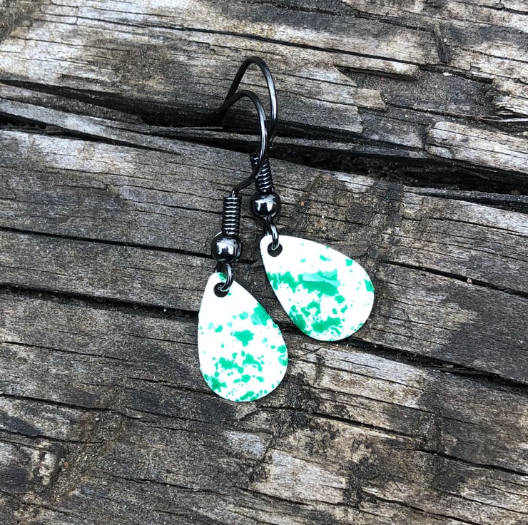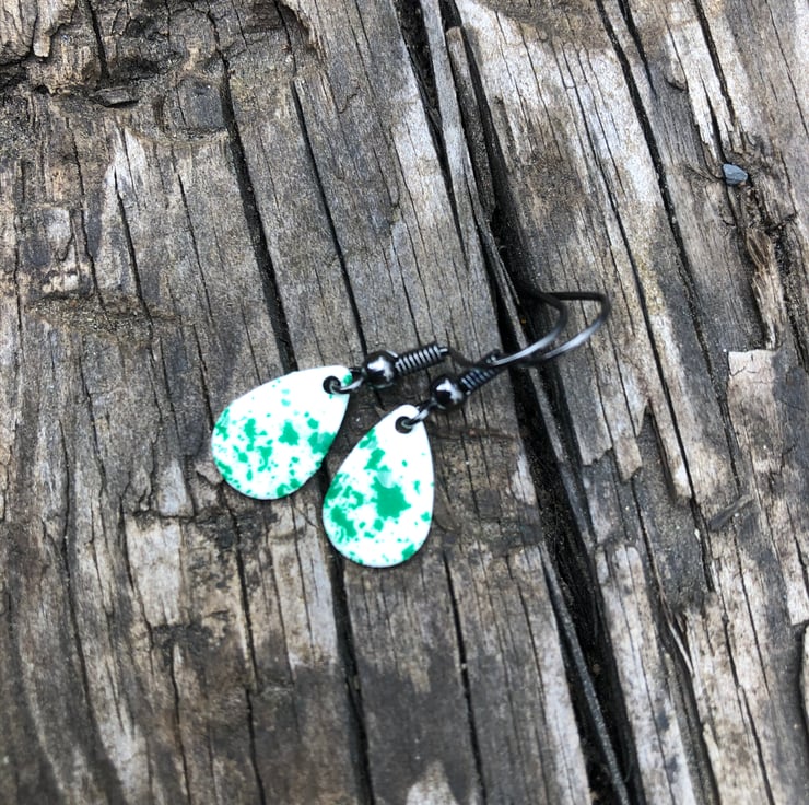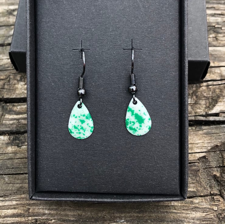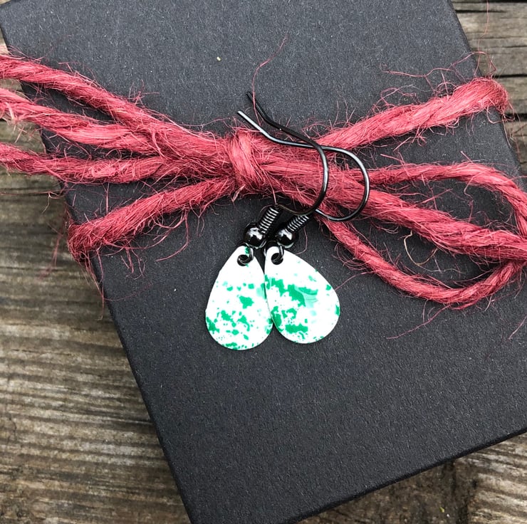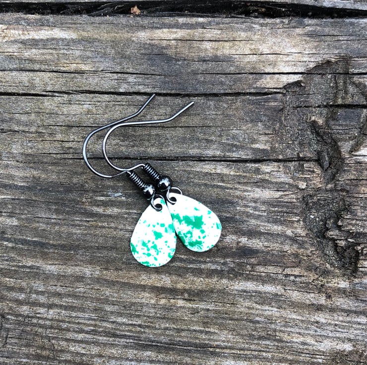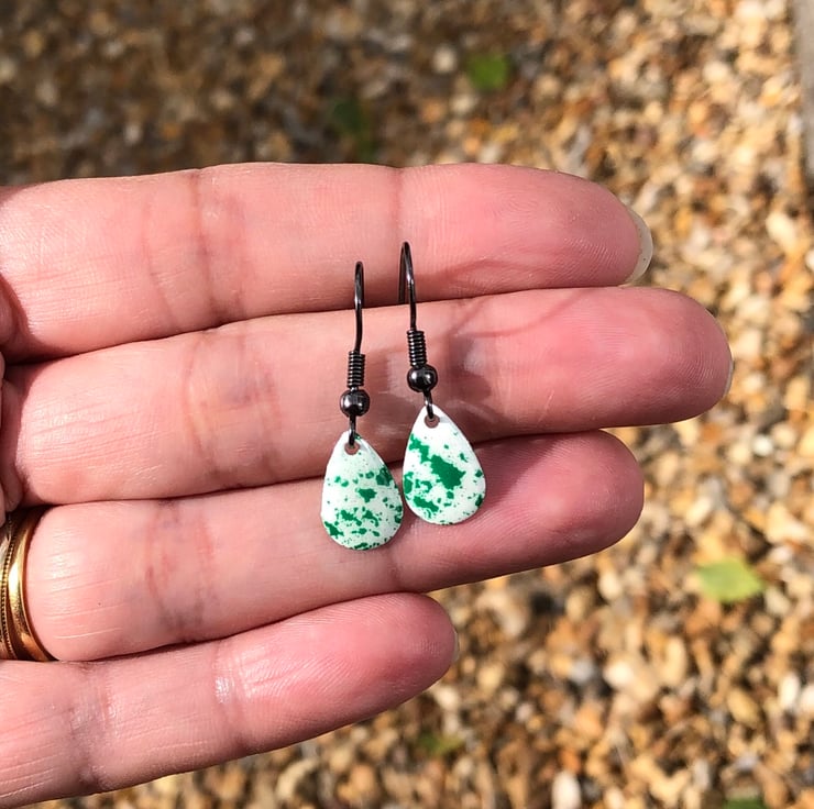 13x8mm silver tone metal charms have been hand enamel in a selection of cold enamel colours. The charms hang from antique black brass earrings, but can be upgrade for an additional cost of £2.50 to Sterling Silver.