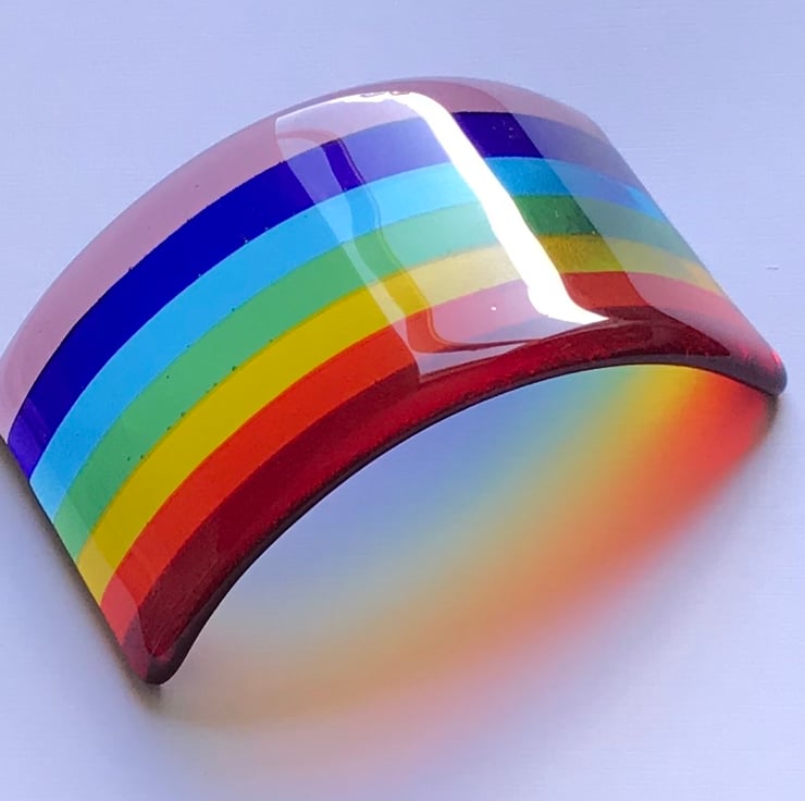 Your own personal rainbow made from carefully cut coloured glass which is fused twice in my kiln to form this piece. It can stand alone as a sculpture or used as a candle screen. The piece measures approximately 14cm x 7 cm x4cm. Price includes postage and packing.
