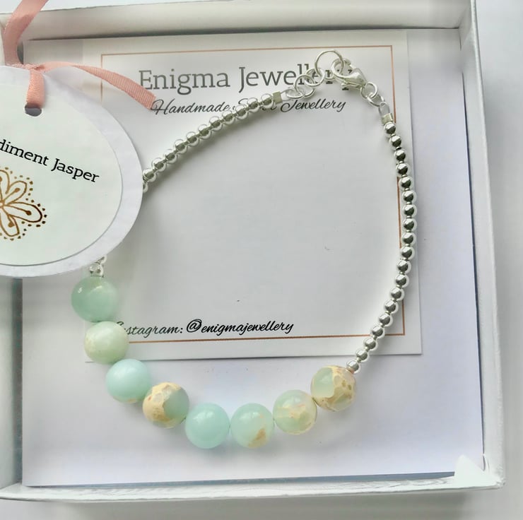 Beautiful beaded bracelet using these stunning Sea Sediment Jasper semi-precious beads & sterling silver beads. This is such a simple but stylish design & would enhance any outfit!