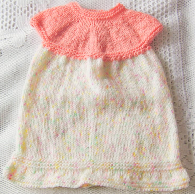 This 2 piece set is in stock in these shades of pink and flecked white yarn in a size to fit a 0 - 3 month old baby, 16 - 18 inch chest, but it can be made for you in a colour of your choice, please state required colour when you order. The processing time for this item is between 1 and 2 weeks.