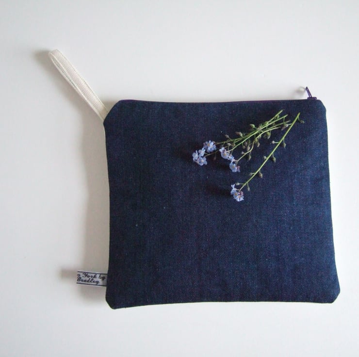 It measures 20 cm across and 18 cm deep, and has a purple 20 cm long zip opening.