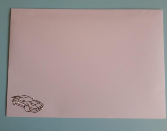 The insert has a paler version of the background picture on the front, with a space to write your message, the ivory coloured envelope has a gold sports car in one corner.