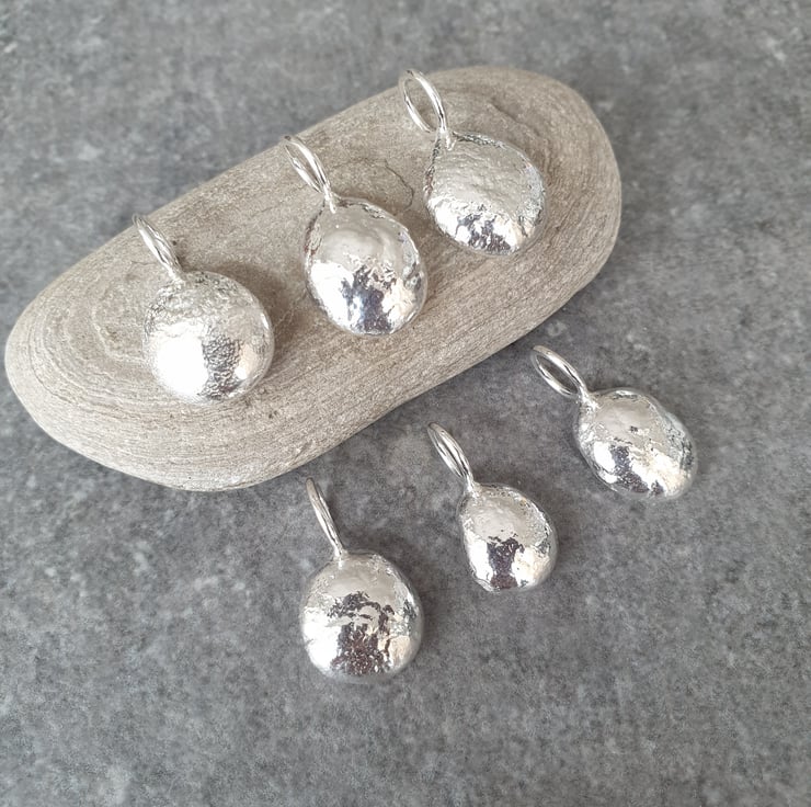As these pendants are melted down from scrap, no two will be identical. Slight differences in size, shape and surface texture can be expected. Please see the second to last image for some examples of what's currently in stock.