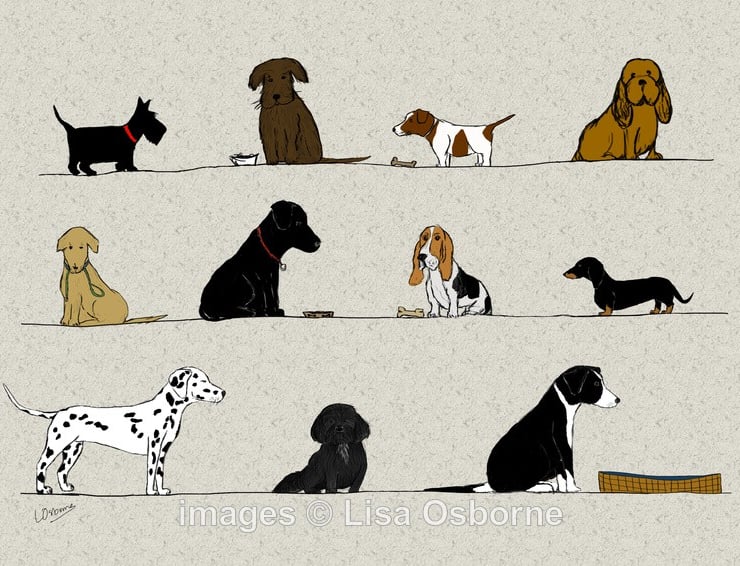Dogs - The print is a high quality, open edition print from one of my digital illustrations showing lots of dogs!