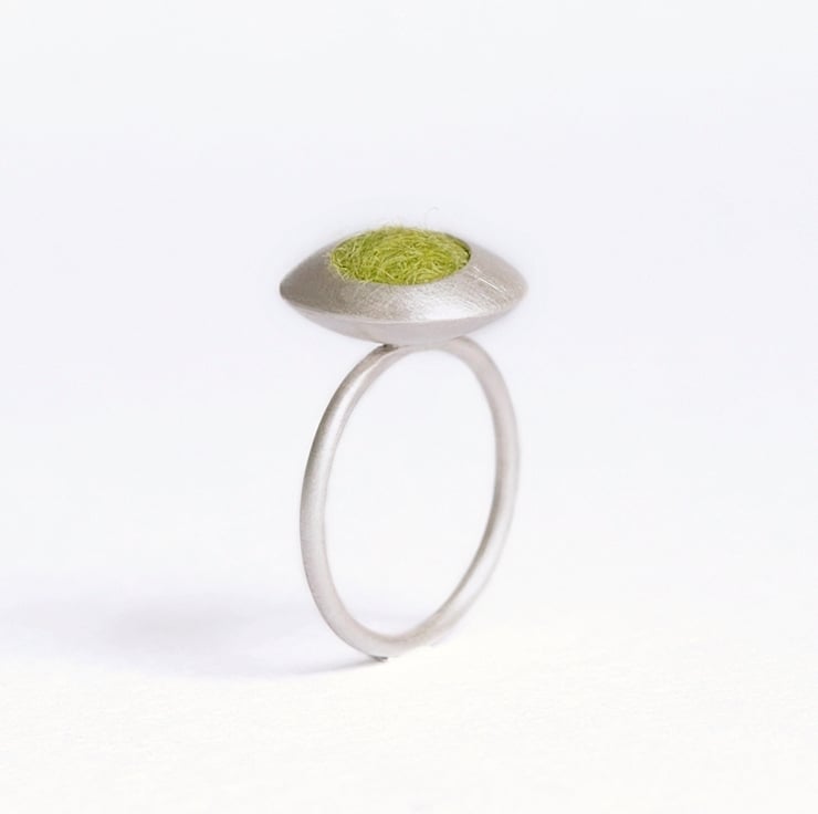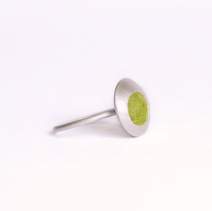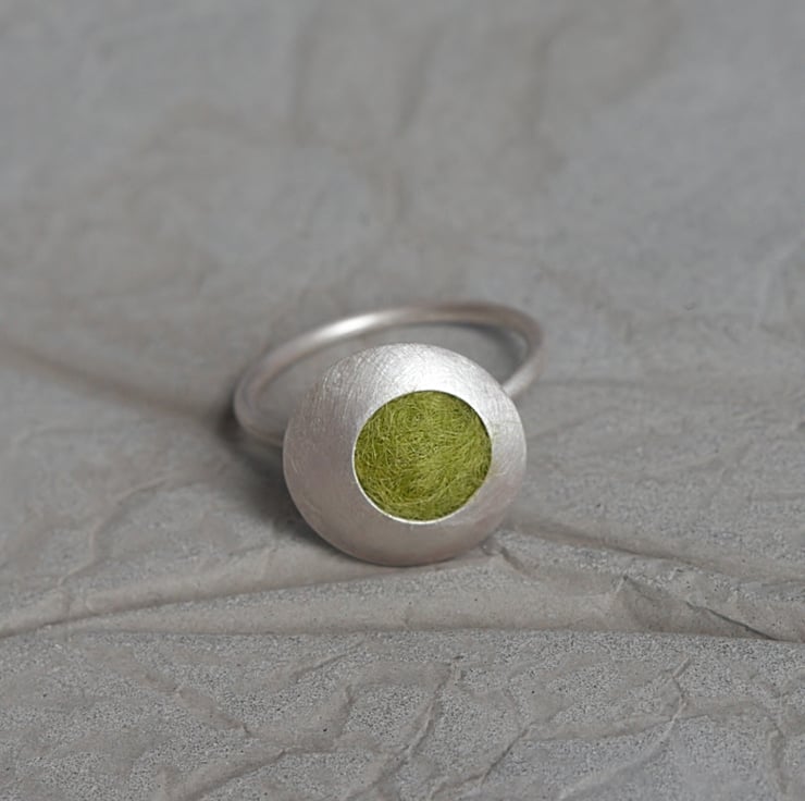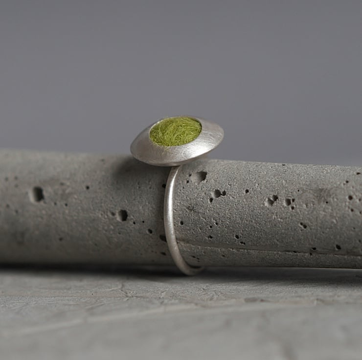 Fabulous ring handmade from sterling silver and green felt. Modern and simple ring with brushed matte finish. Specially comfortable and very feminine is ideal for everyday wear or special events. Will be perfect for the office or a party!