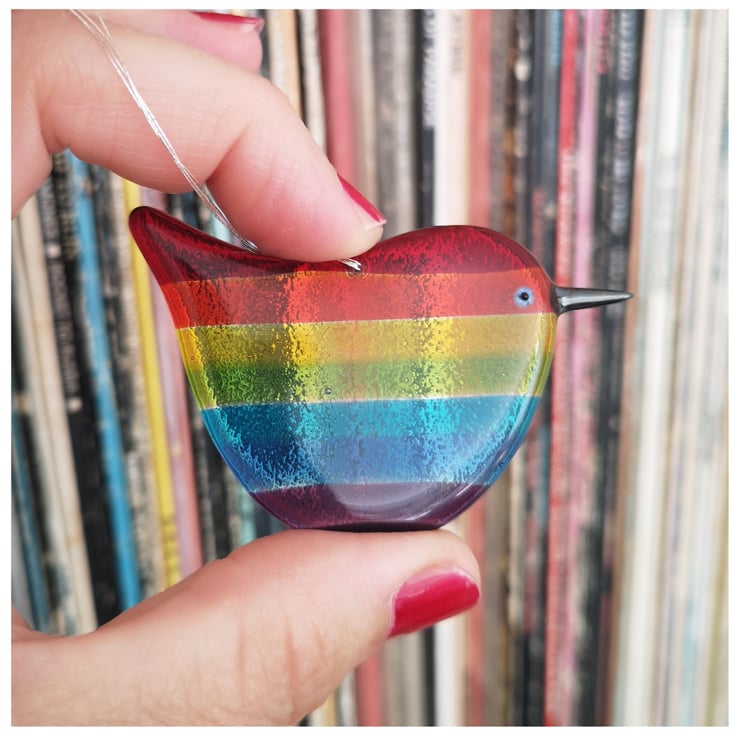 These little birds are a labour of love as I make the rainbow glass and then grind each one into shape using cold working tools and machinery, before a second and sometime third firing. See images.