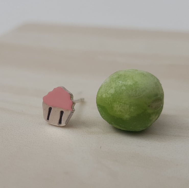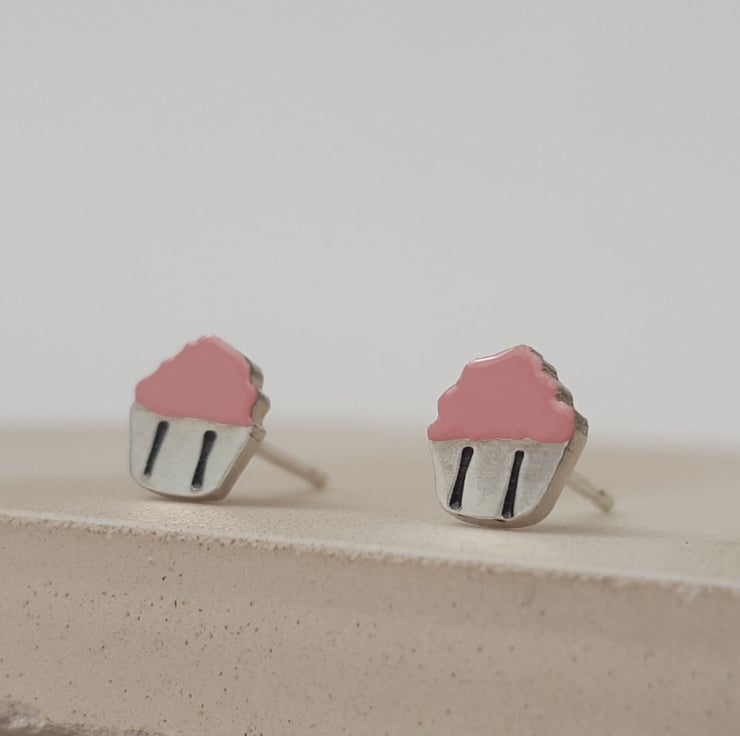 Handmade sterling silver cupcake earrings