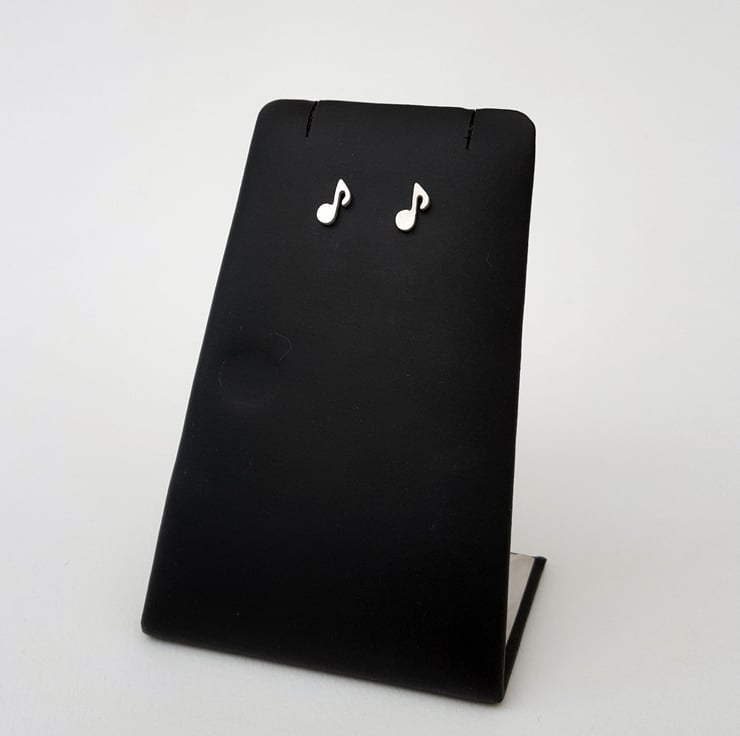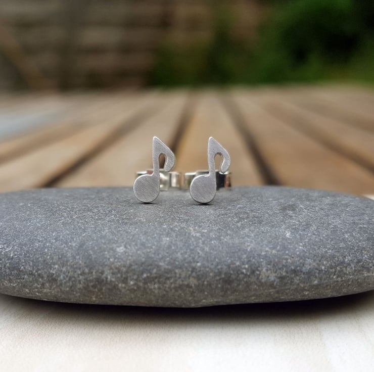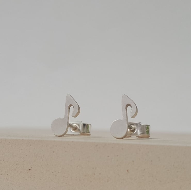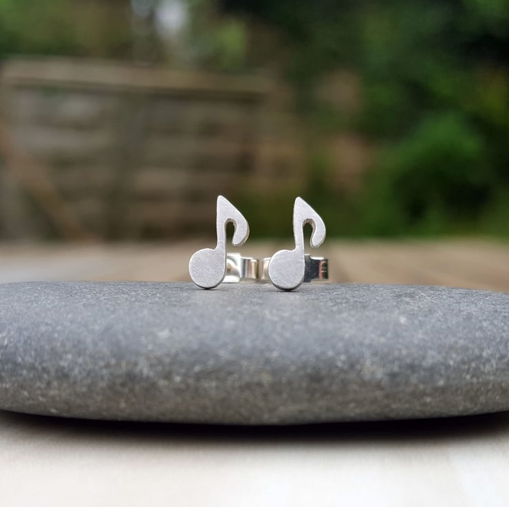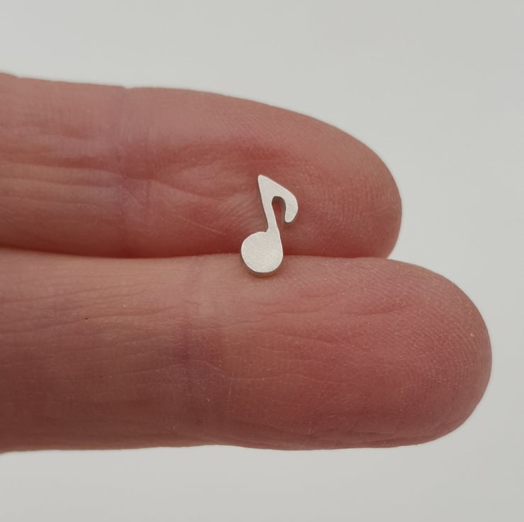 Imagine a simple gift for a lover of music. These quaver studs are part of a collection of miniature earrings based on different interests. They are made completely from sterling silver, including pins soldered to the back and earring scrolls.