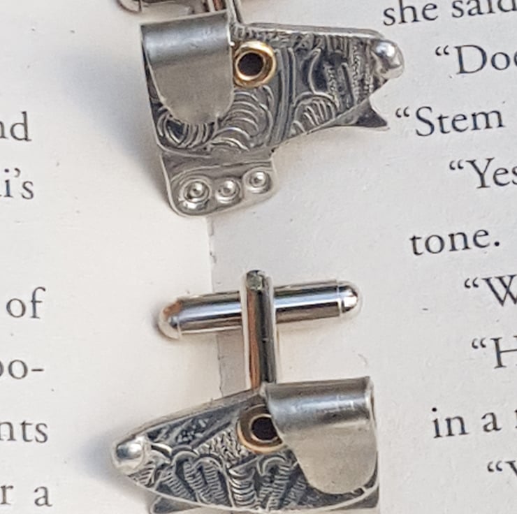 Quirky cufflinks for the those who have a love of dogs. These have been designed and handmade by Jim Stringer at Quirky Metals in Sheffield, England.They have been are made using traditional skills. They are supplied in a handmade decorative box so will be an ideal gift. These are part of a range with a dog theme. There is also a matching tie pin/tack available to buy. As each one is handmade then it is is an individual (a bit like our beloved pooches really!)