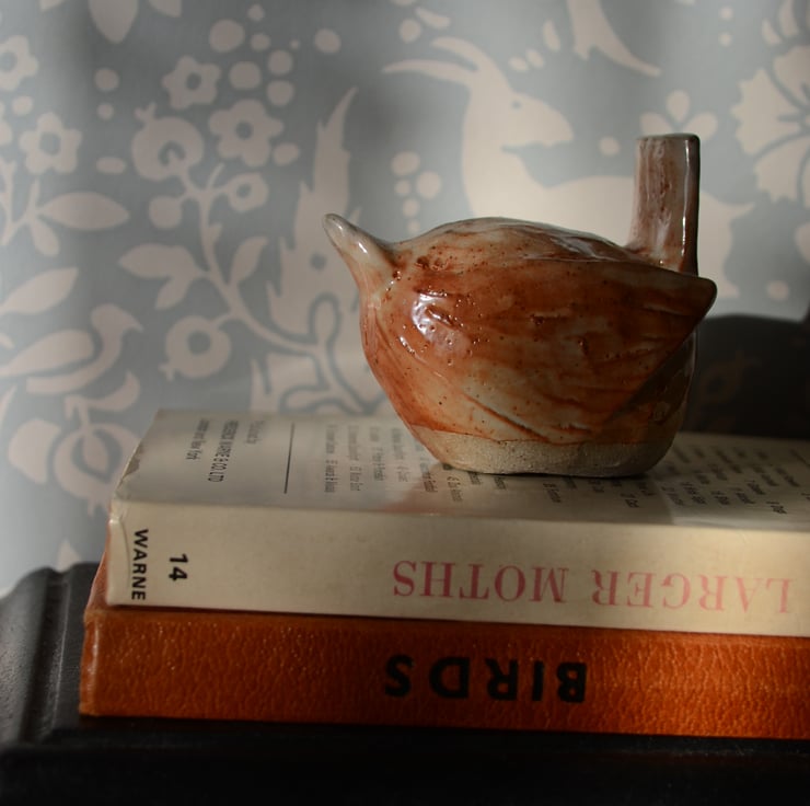 With this glaze I was not trying to replicate the feathers and colouring of a wren but looking for a feeling and finish that is special to wood firing and has a quality of this lovely bird.