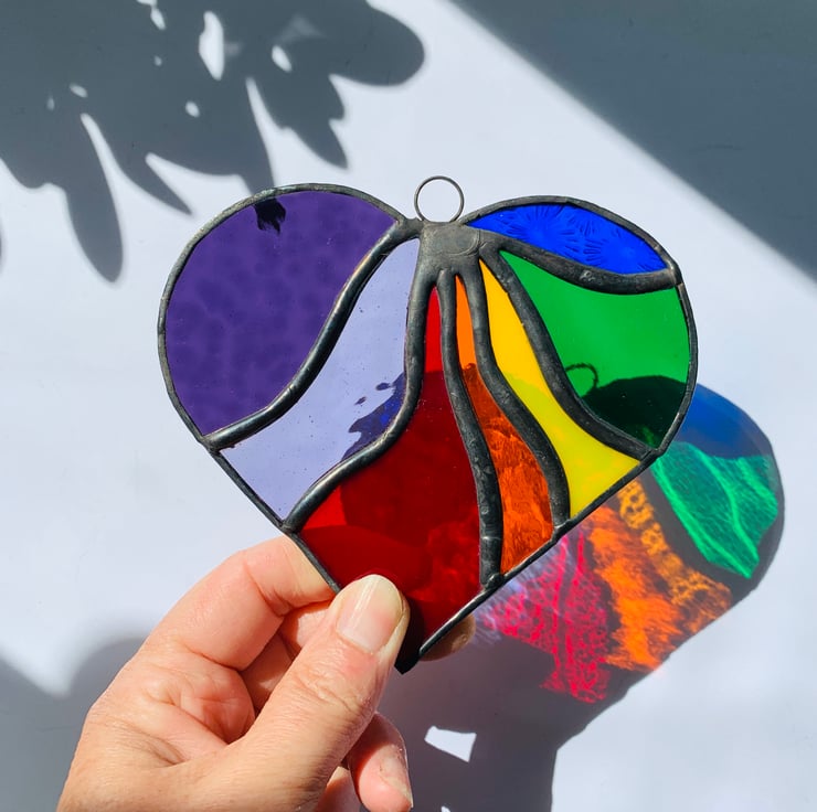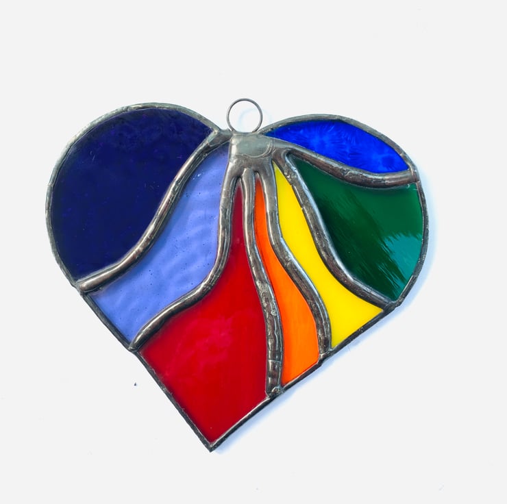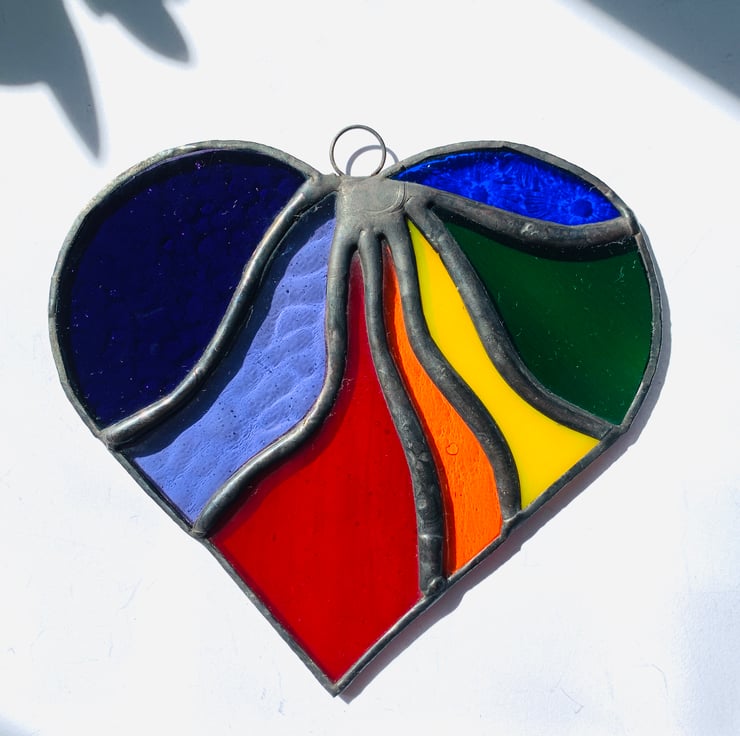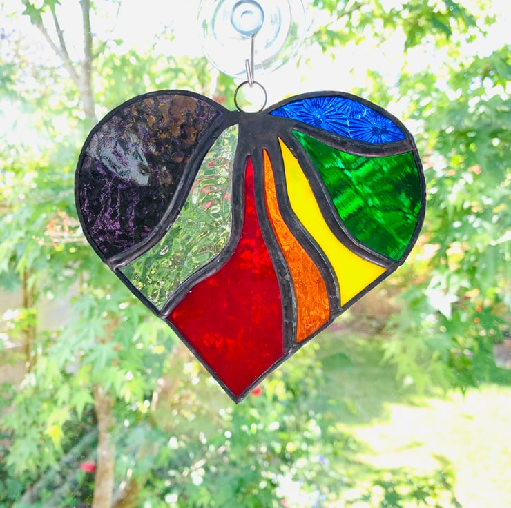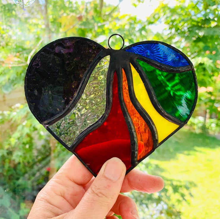 This beautiful heart is made from vibrantly coloured stained in all the colours of the rainbow.