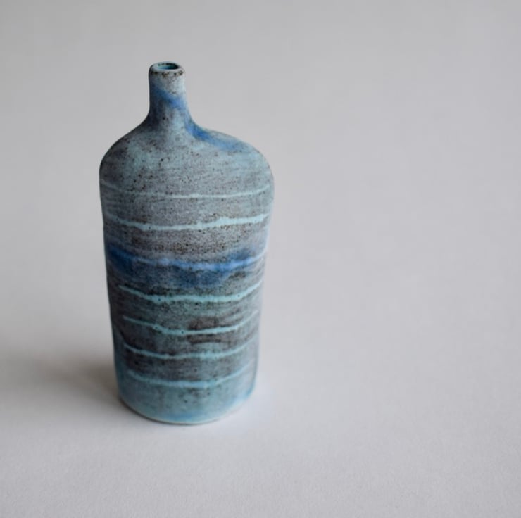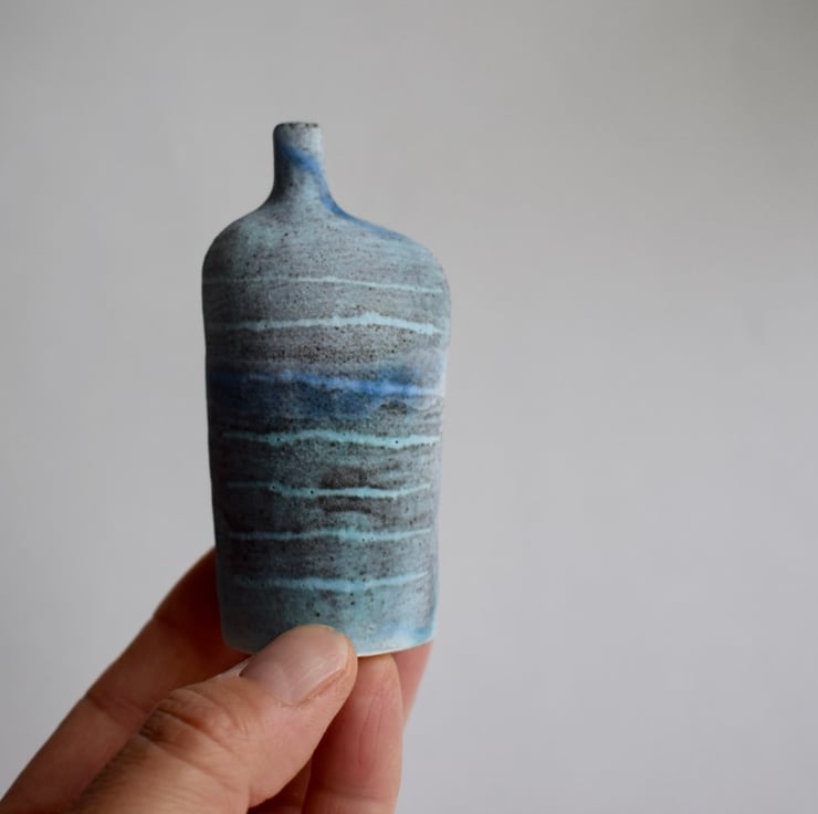 The bottles I make are inspired by human form featuring small necks with wide shoulders. The application of the glaze emphasises the feeling of landscape.