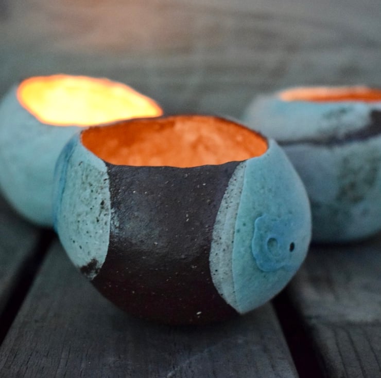 The wide top is just wide enough to pop a tea-light inside. The whole piece measures 8cm across by 7am high.