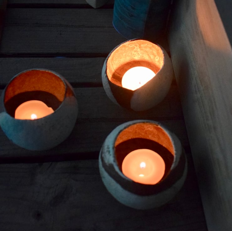 The wide top is just wide enough to pop a tea-light inside. The whole piece measures 8cm across by 7am high.