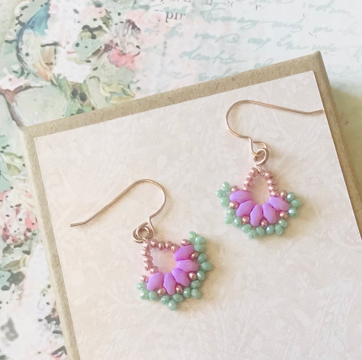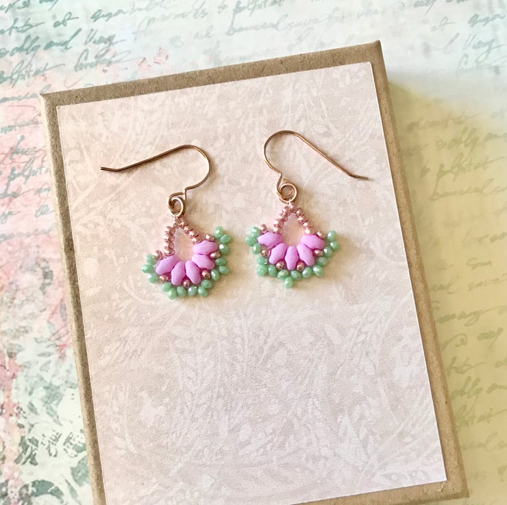 Beautiful sterling silver, rose gold plated earrings made using pretty Czech glass beads- beautiful Summer colours!