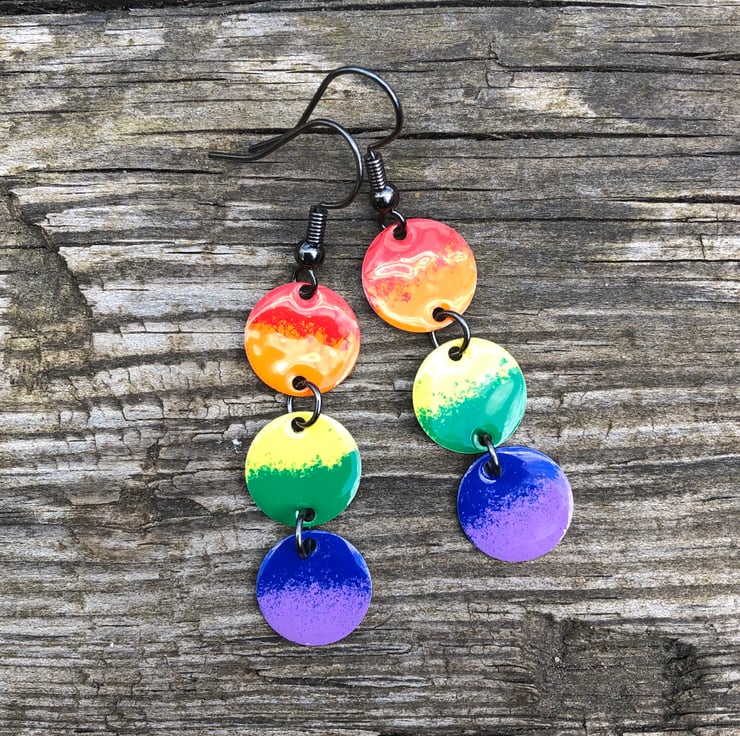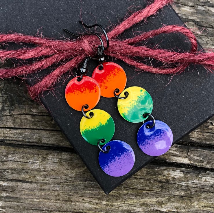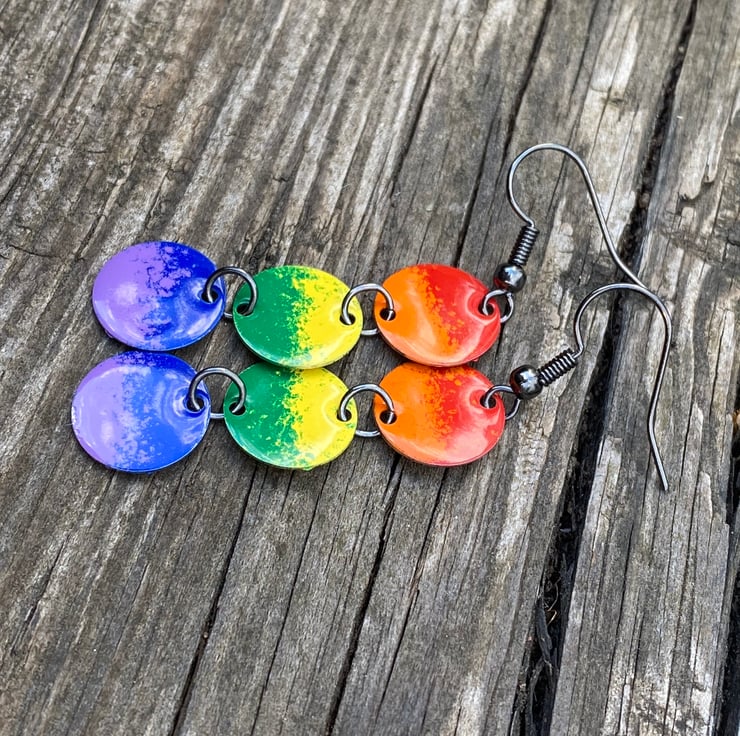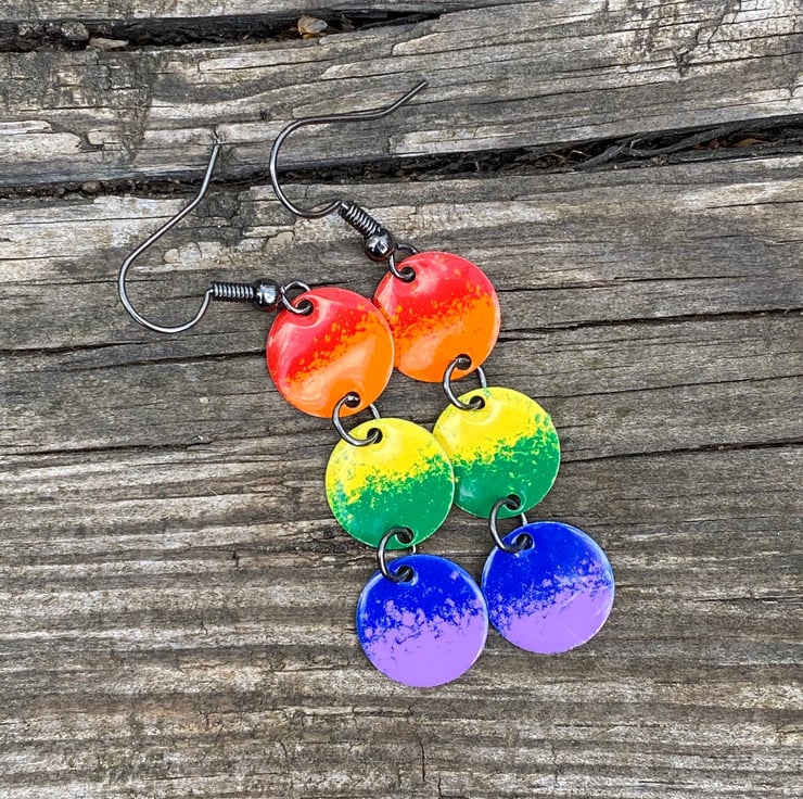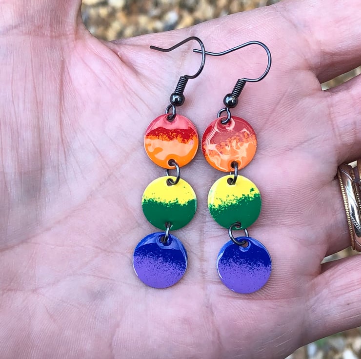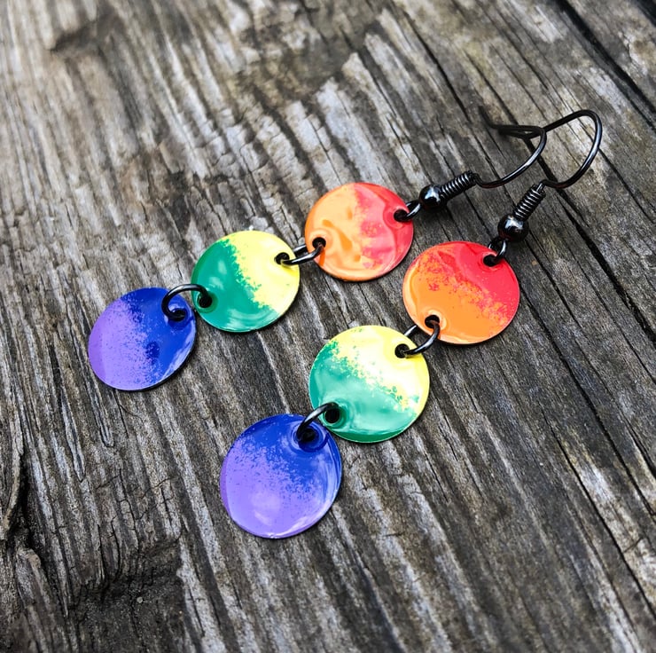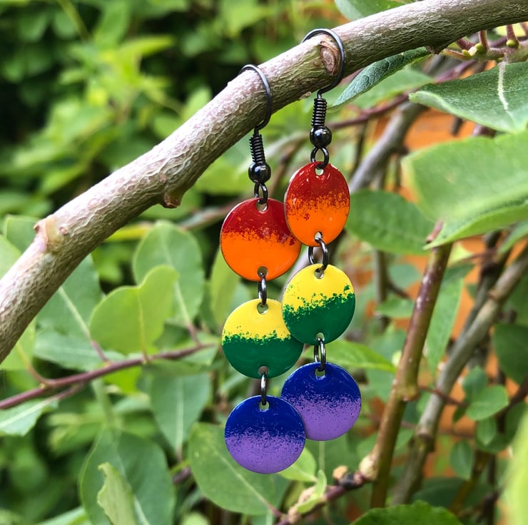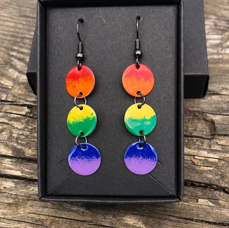 ‘Rainbow Triple’ Enamel Drop Earrings. Sterling Silver Upgrade Available.