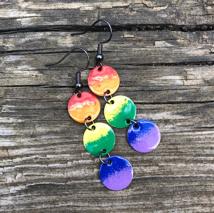 Made using stainless steel charms measuring 12mm each. Each one has been enamelled using the cold enamel technique in all the colours of the rainbow.